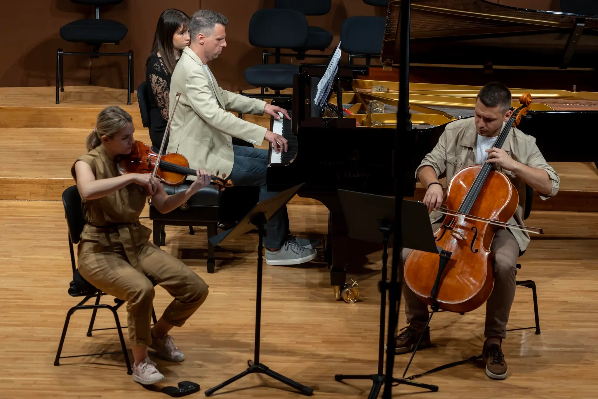 The renowned chamber ensemble Corda Piano Trio — violinist Una Stanić, cellist Nemanja Stanković, and pianist Vladimir Milošević — offered a masterful reading of Shostakovich's two works for piano trio, distinguished by depth, clarity, and emotional intensity. Through their finely balanced interplay, Trio Corda reaffirmed its status as an ensemble of exceptional sensitivity and artistic cohesion. In Shostakovich's musically and emotionally intricate landscapes, the trio found a fertile space for imaginative dialogue — where precision met spontaneity, and structure gave way to deeply felt expression.