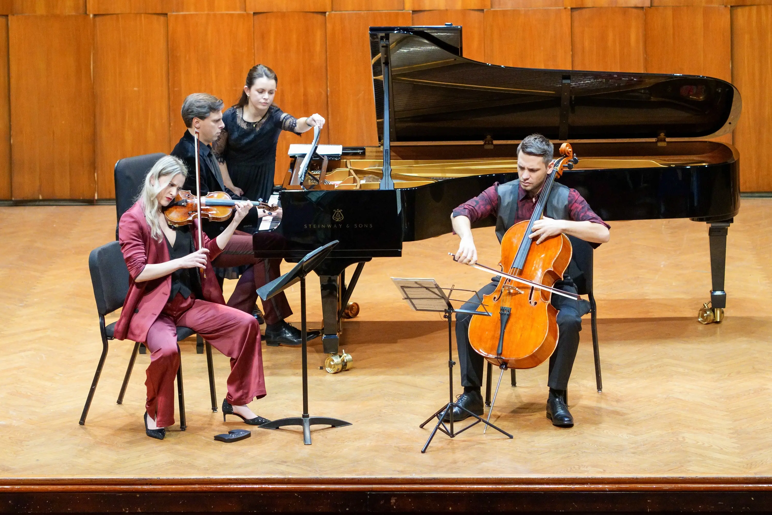 Una Stanić, Nemanja Stanković, and Vladimir Milošević not only possess a remarkable sense of aesthetics, but through their unity, high level of technical precision, and clarity of ensemble sound, they explore a wide range of interactions within harmonic and melodic phrasing. Their performance abounds in subtly shaped rubato, finely balanced doublings, and sophisticated shifts in instrumental color. All of this results in a kind of romanticism that feels entirely contemporary—purified of mannerism and free from imitation of any particular artist or icon of the 20th-century music scene. By this quality, Trio Corda can be described not merely as a modern ensemble, but as a truly distinctive one—unique by any standard and on any stage in the world. Few ensembles today are capable of sustaining such intensity and rapture throughout an entire performance.
